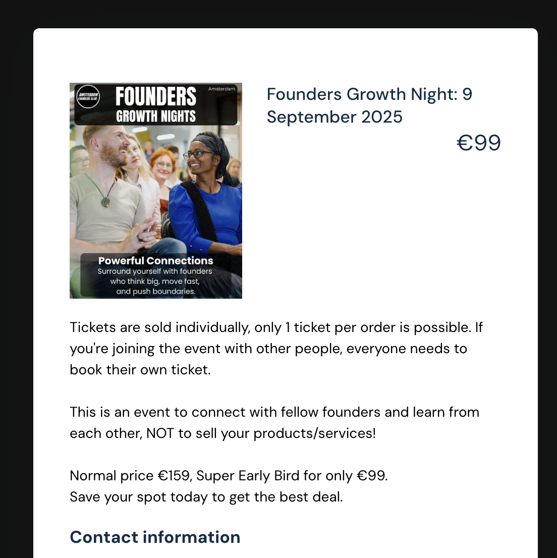 I built Amsterdam Founders Club from scratch into one of the city’s most popular entrepreneurial communities, hosting events that regularly sold out with 100+ founders in attendance.